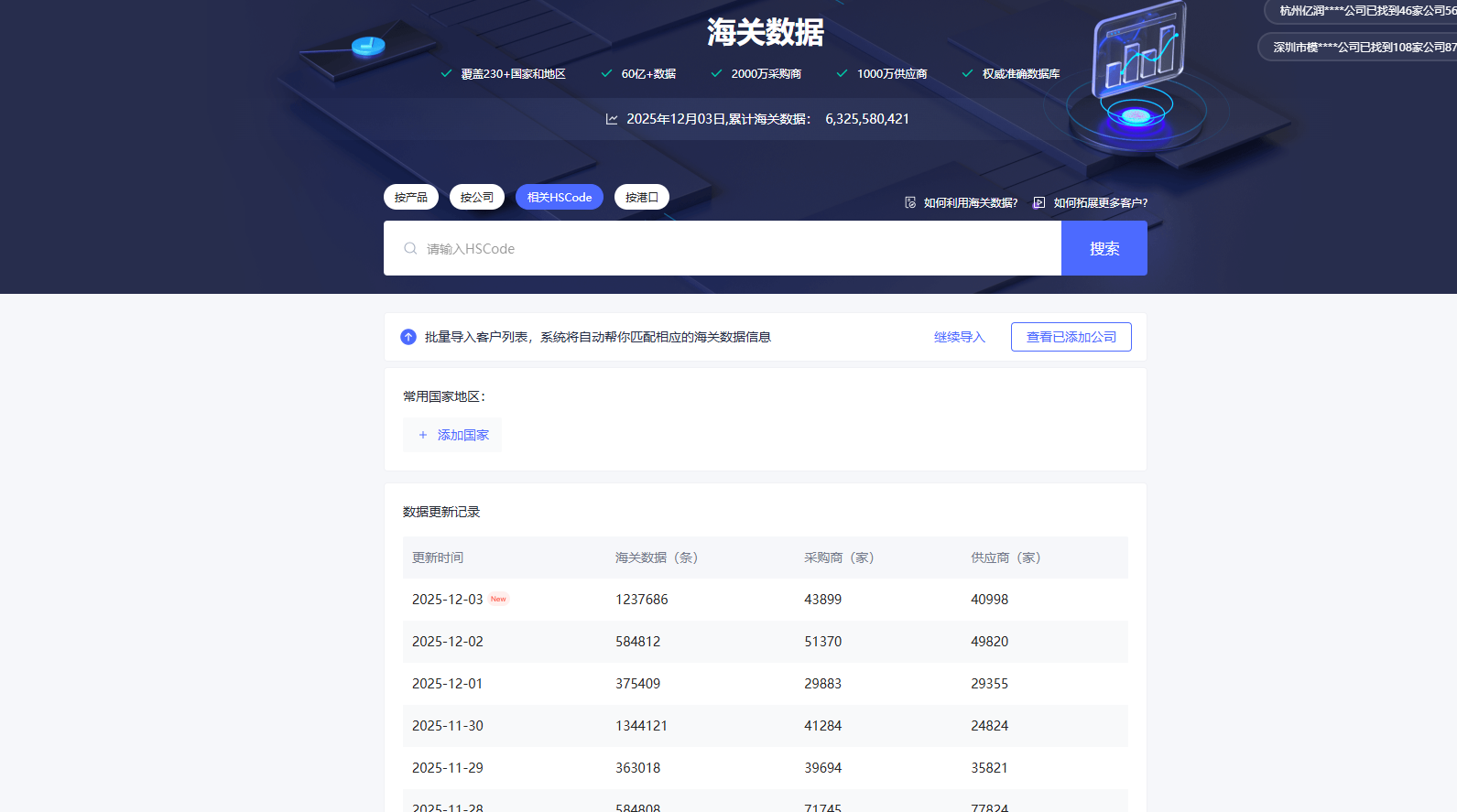 网易外贸通提供来自230+个国家和地区的全面海关数据,其数据覆盖面更加广泛,特别适合需要全球贸易数据的企业。